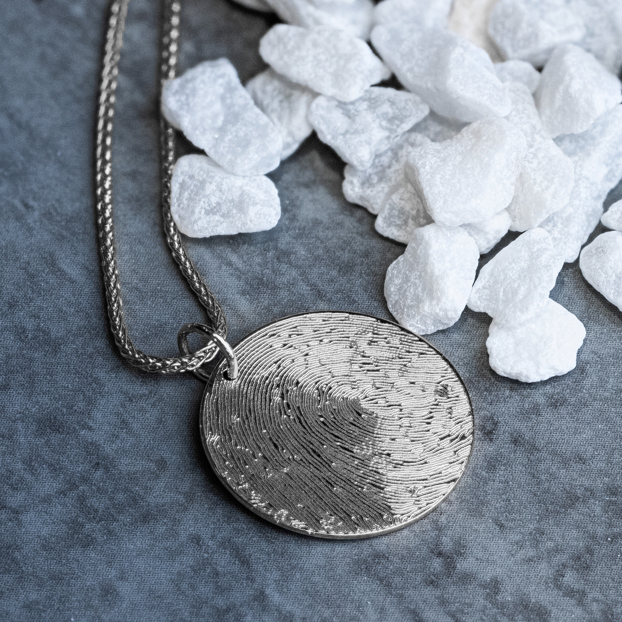 Bewahren Sie die einzigartige Spur eines geliebten Menschen – mit unserem Fingerabdruck-Gravuranhänger in runder Form. Dieses besondere Schmuckstück hält persönliche Erinnerungen lebendig und ermöglicht es Ihnen, die Verbindung zu einem besonderen Menschen für immer bei sich zu tragen.