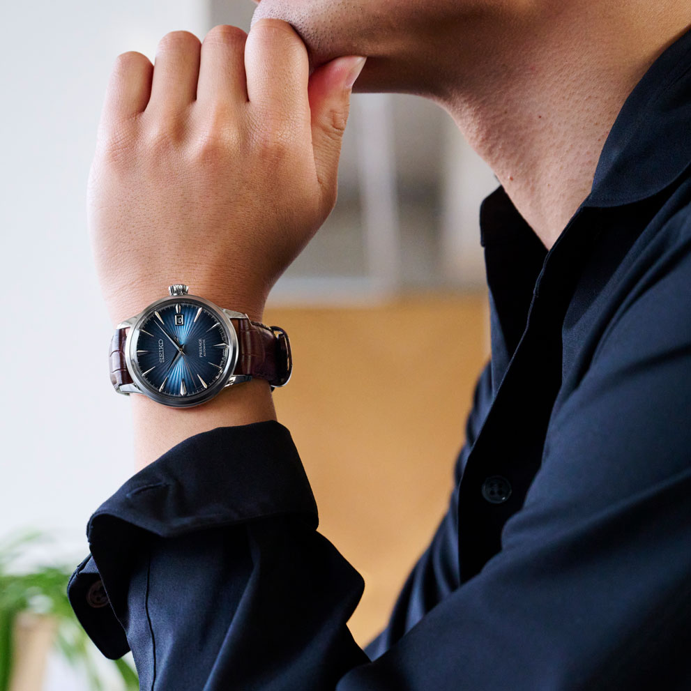 - Seiko Presage „Cocktail Time“ SRPK15J1 – Design inspiriert vom Blue-Moon-Cocktail