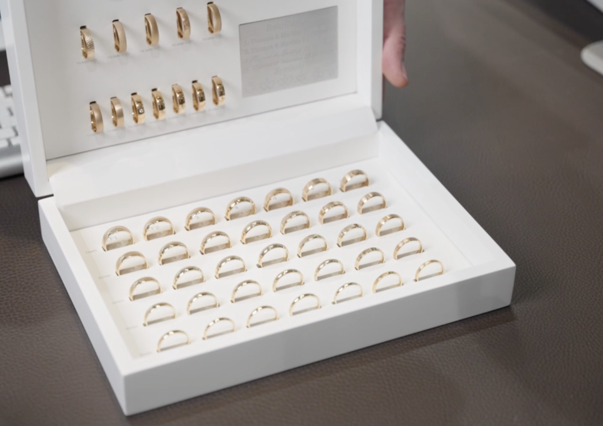 Es gibt auch spezielle Ringmessgeräte, die Sie online oder in Schmuckgeschäften kaufen können. Diese Geräte bestehen meist aus einer Schablone mit verschiedenen Ringgrößen und einem Schieber, mit dem Sie die Größe Ihres Fingers messen können. Bei uns können Sie dieses Messgerät auch kostenlos bestellen.