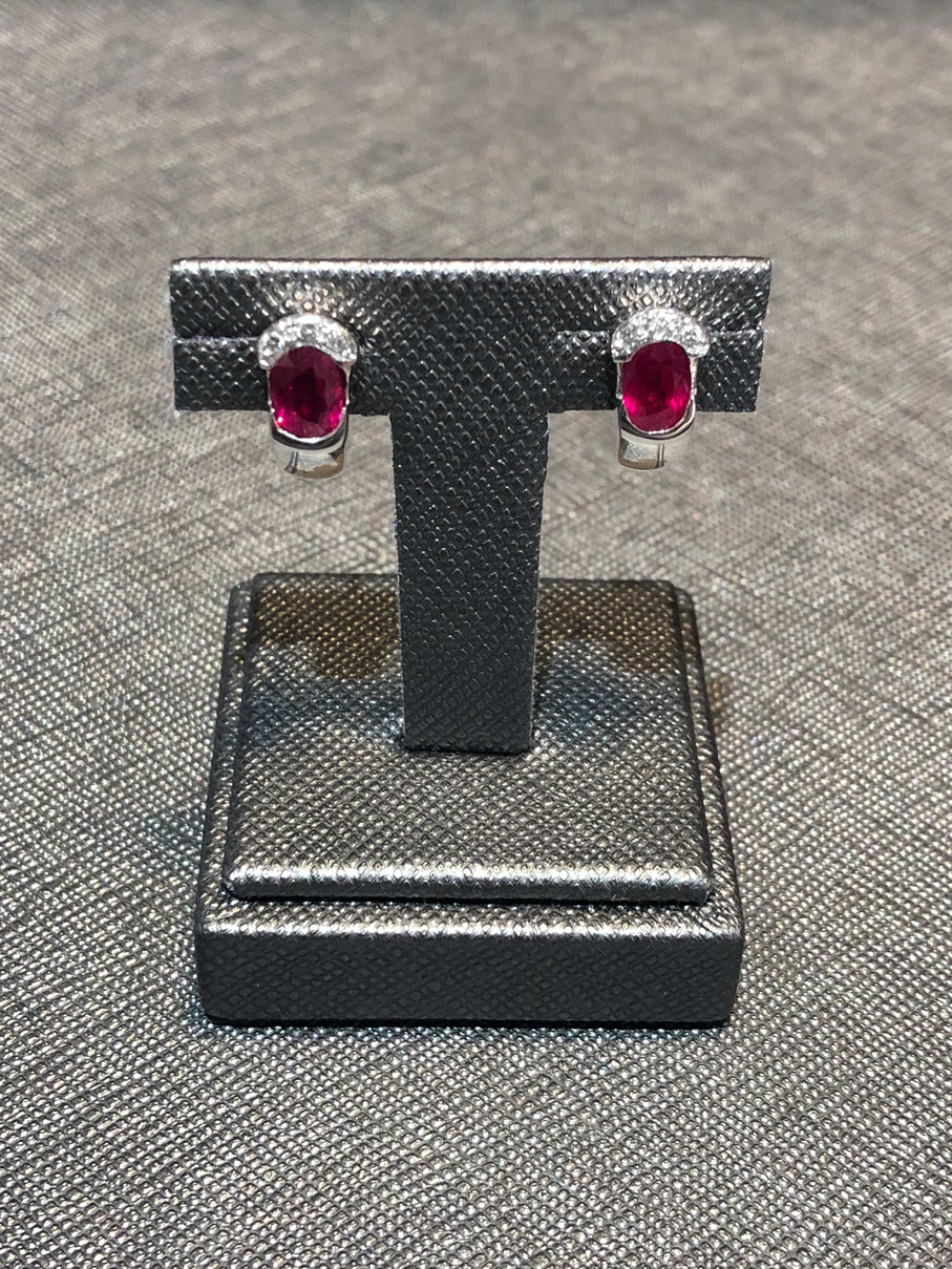 Weißgold Ohrstecker aus 585/- Gold besetzt mit Rubinen 1,20ct. und Brillanten, ges. 0,06ct. H si.