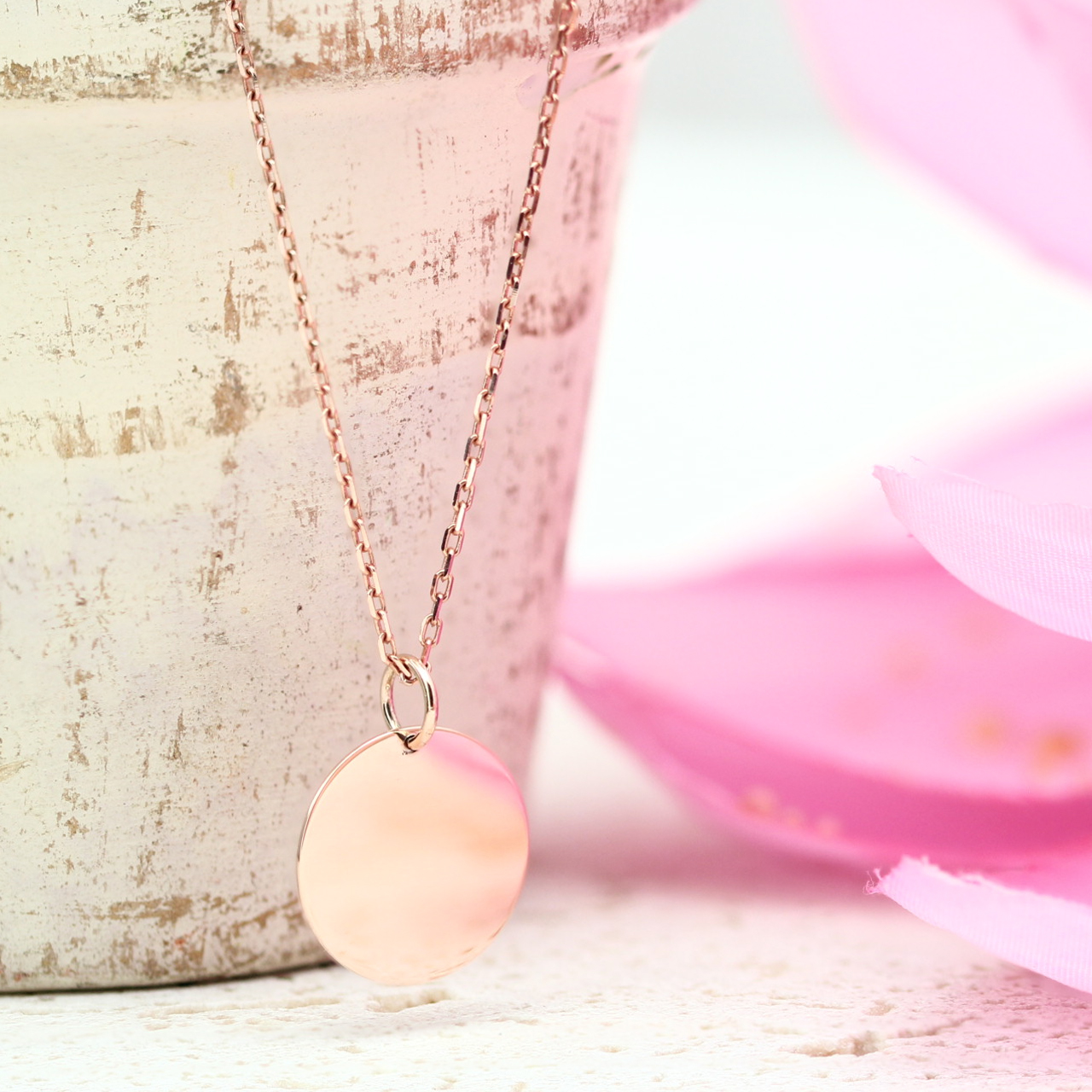 Ob im Alltag oder für besondere Anlässe – mit dieser dezenten Halskette mit rundem Anhänger kannst Du jedes Deiner Outfits aufwerten. Dabei bietet das runde Plättchen zudem genug Platz, um jedes beliebige sowie für Dich bedeutsame Wort einzugravieren.
