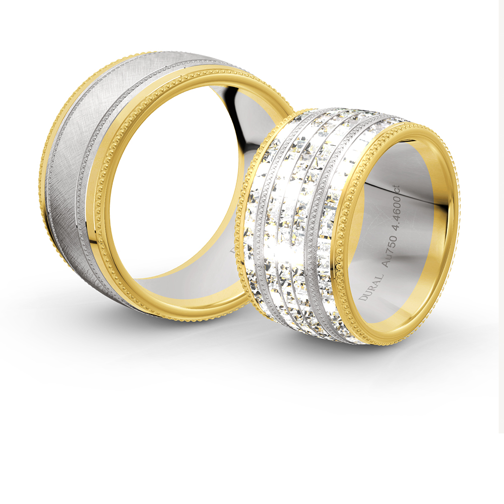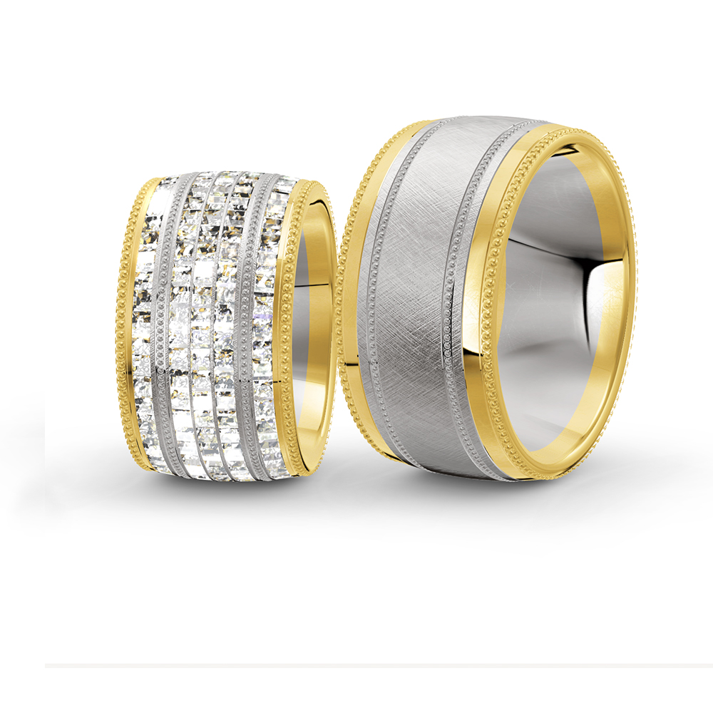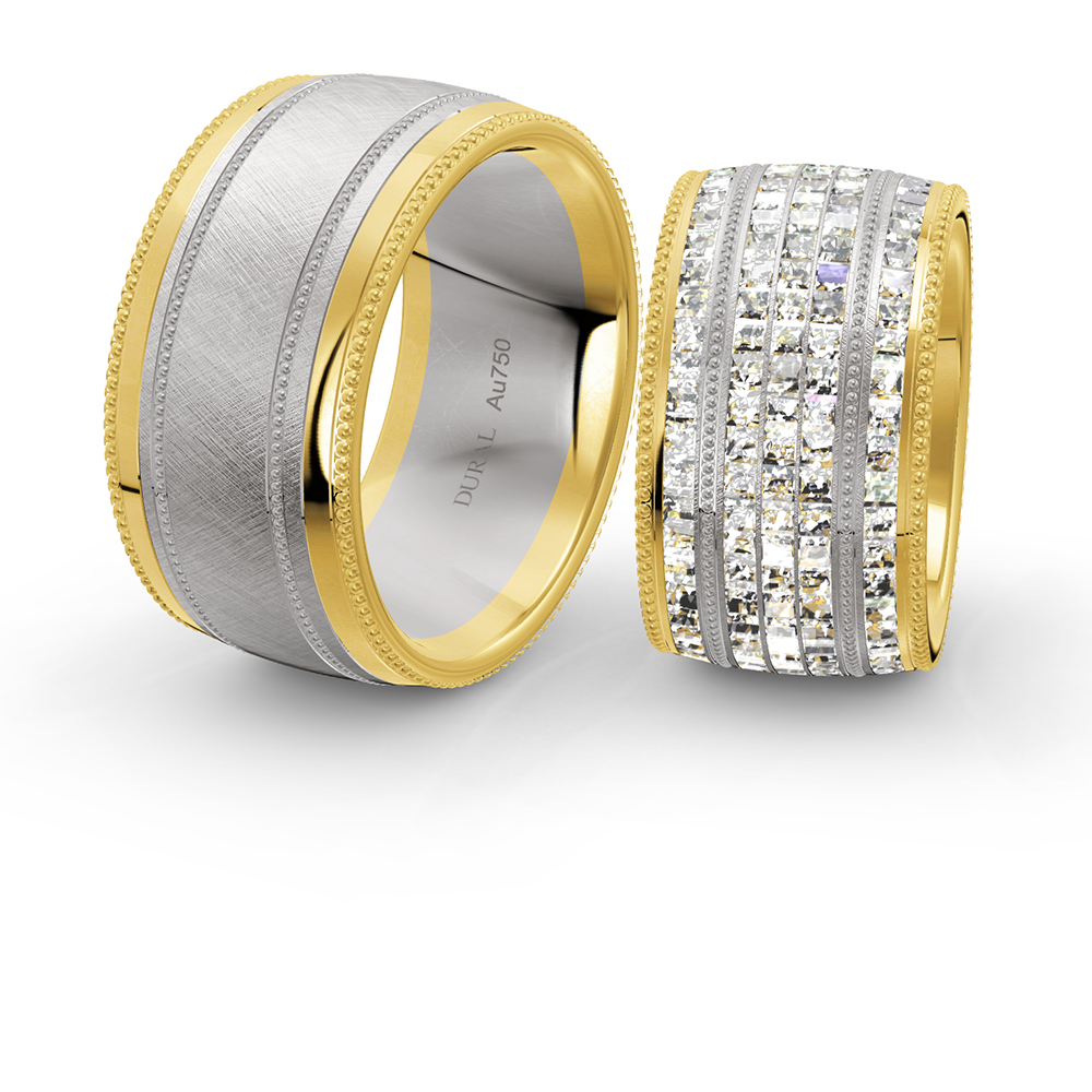 750/- Weißgold mit hohem Palladiumanteil für eine dauerhaftes Weiß, kombiniert mit 750/- Gelbgold.