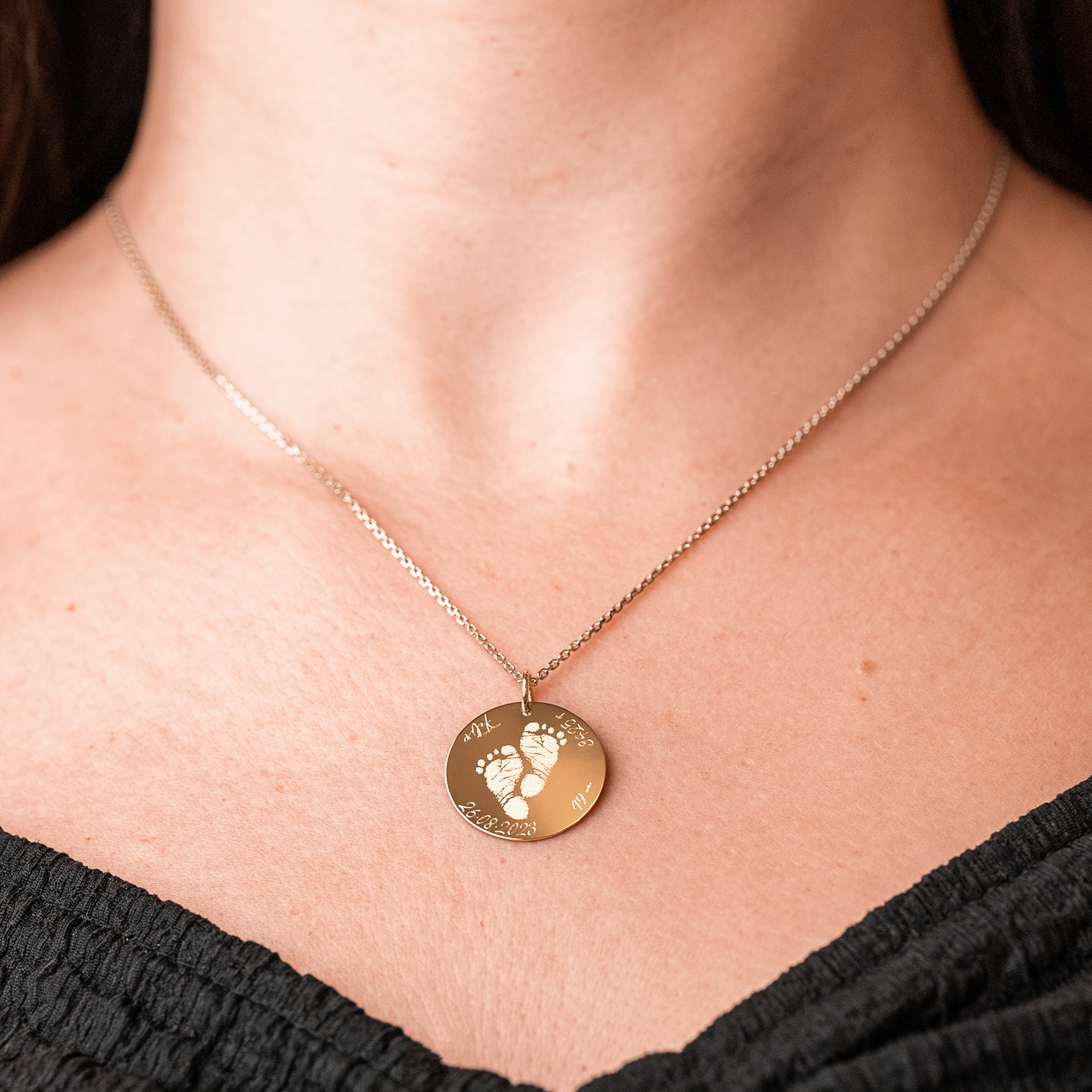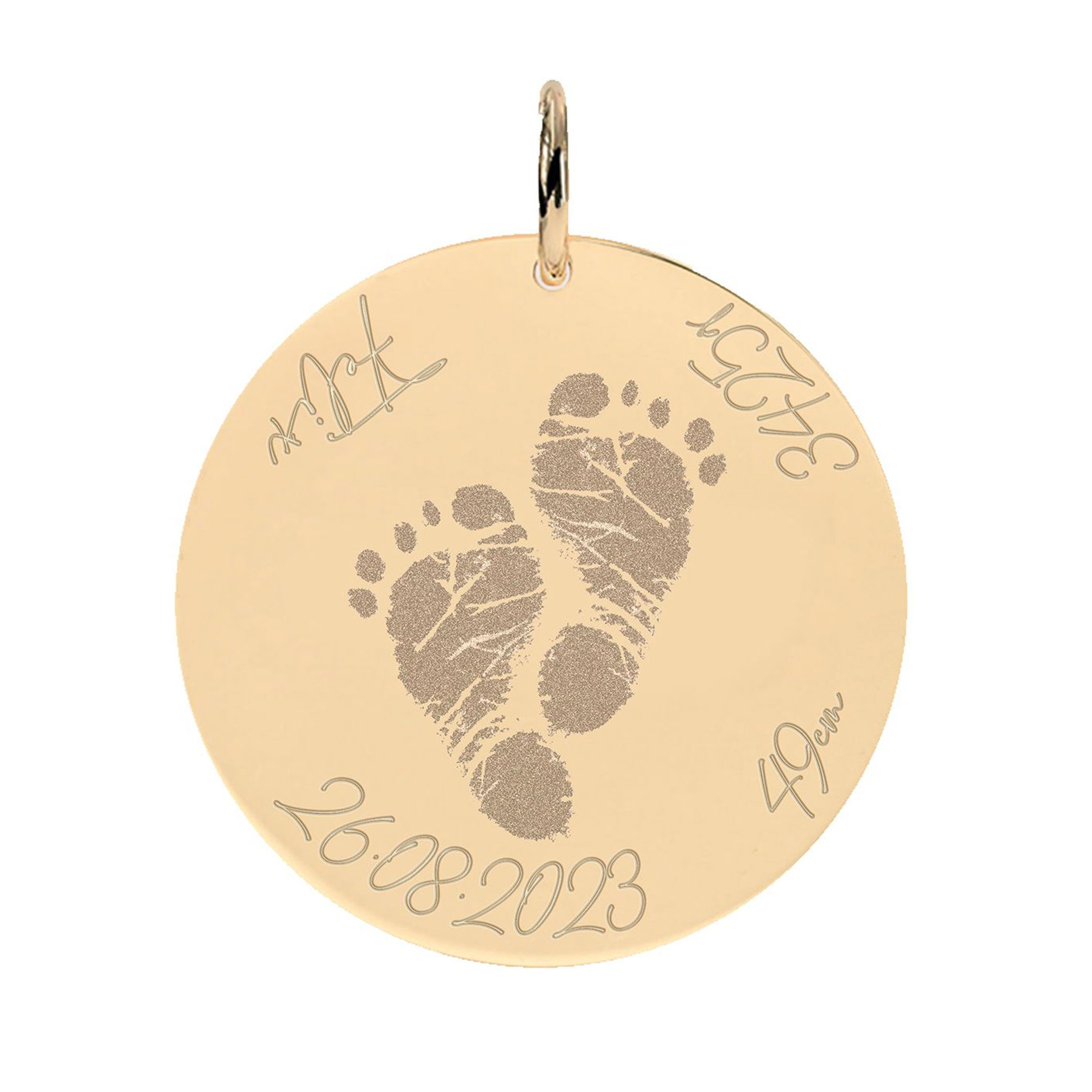 Fußabdruck Geburt Daten Gravuranhänger Rund aus echtem 585er Gold