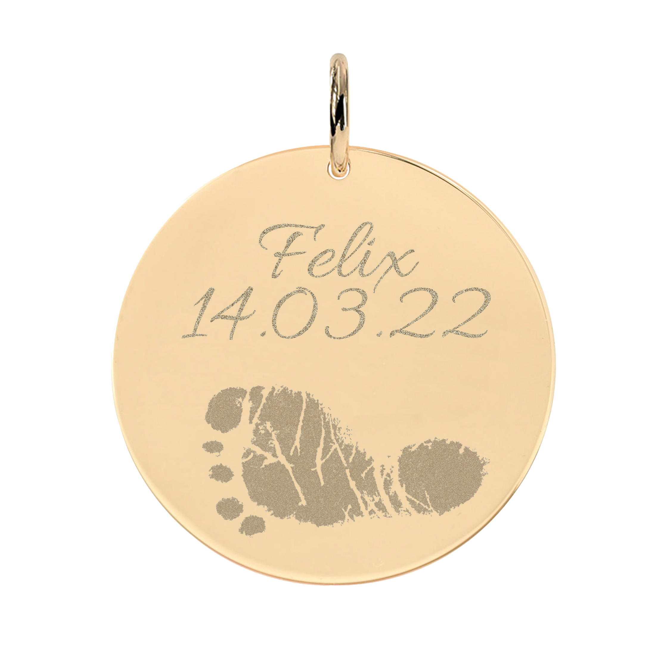 Fußabdruck Geburt Daten Gravuranhänger Rund aus echtem 585er Roségold