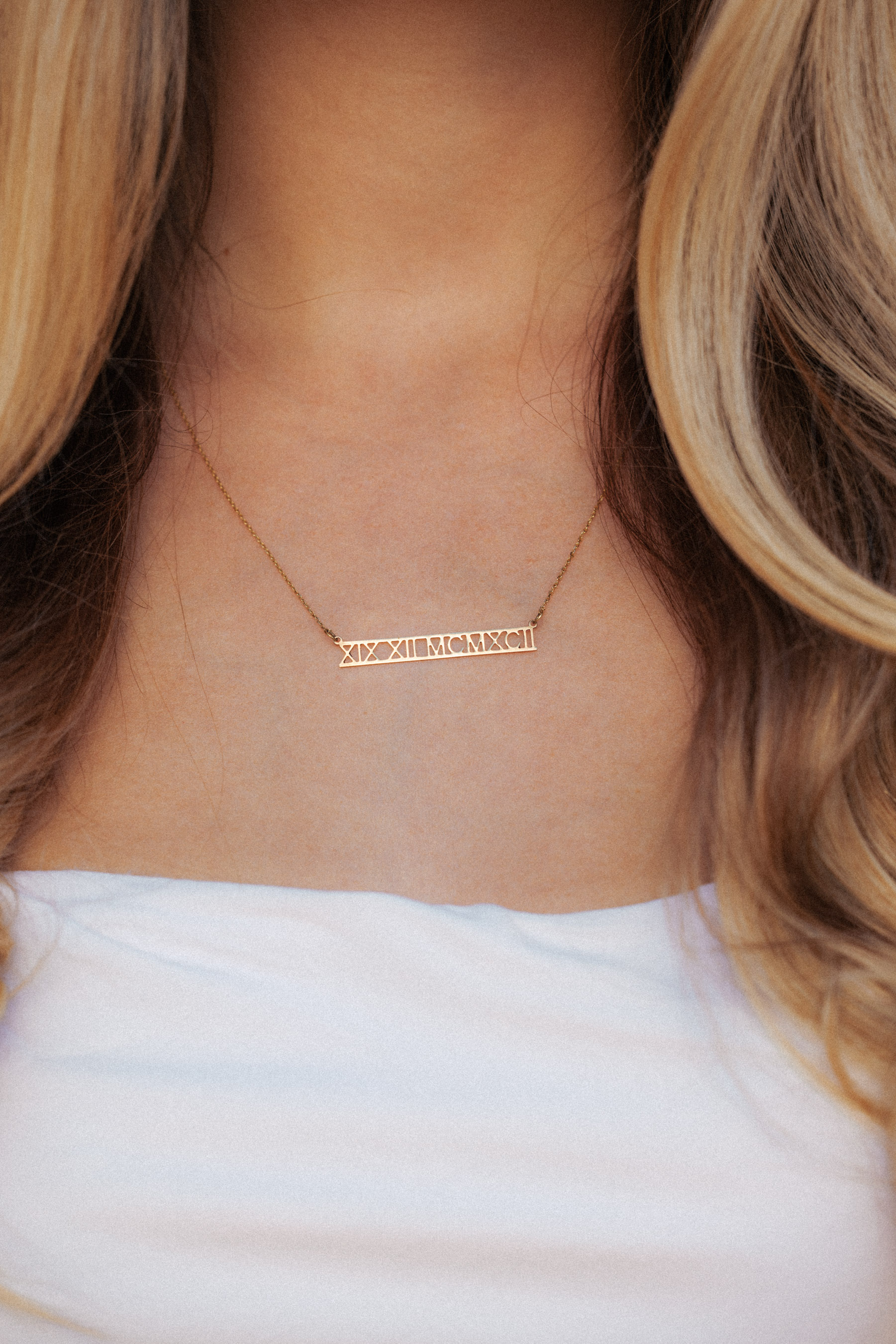 Personalisierbarer Anhänger mit römischen Zahlen. Sie können den Anhänger mit einem individuellen Datum oder Zahlenfolge bestellen. Der Anhänger hat eine polierte Oberfläche und wird mit einer Ankerkette geliefert. Sowohl Kette als auch Anhänger sind aus 14-karätigem Gold (585/- Gold). Der Anhänger hat eine Höhe von 5mm.