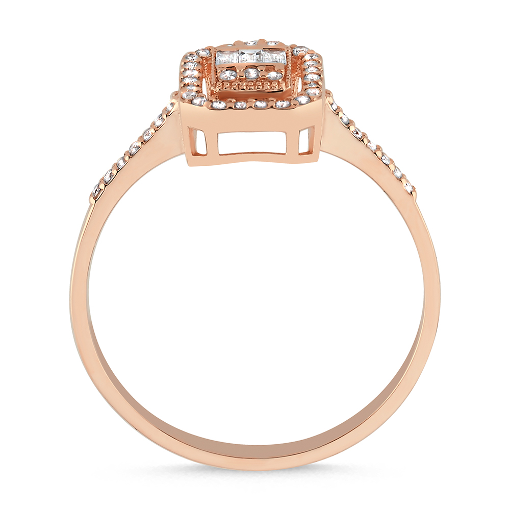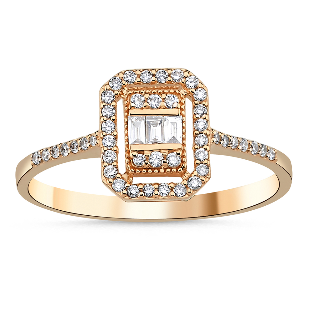 585/- Roségoldring mit Diamanten im Baguette- und Brillantschliff (ges. 0,22ct. F/VS-SI).
